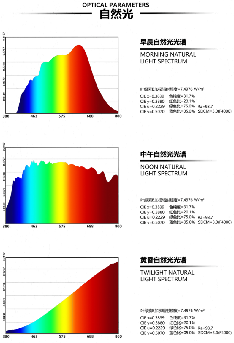 为展现真实的自然光,治愈光不是一种 LED 的单一颜色,而是由各通道不同光源汇聚出的组合光。通过绝对精准的复杂算法,确保产品能够像自然光一样执行超宽色温并保持较高的显色指数(CRI),最终展现出最贴近真实的自然照明环境的光变化