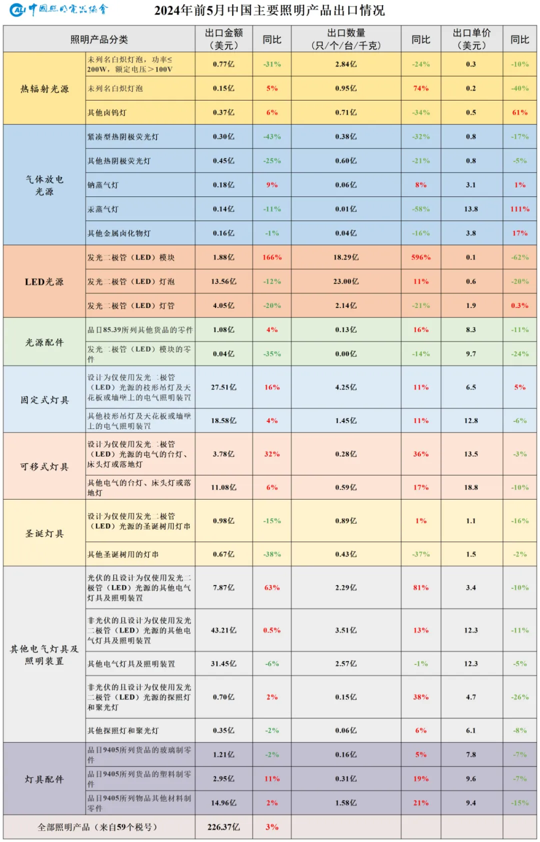 2024年前5月照明行业出口简报