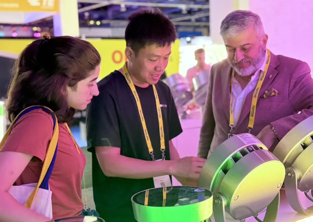 展会期间,展会官方在 2025 Trend Area区域展示的芯龙光电创新产品,Holovision 全息水晶球和A20 户外球形投影机,如是贸易壁垒荒漠中的一把烈火,点燃与来自世界各地的客户、合作伙伴的火热交流。