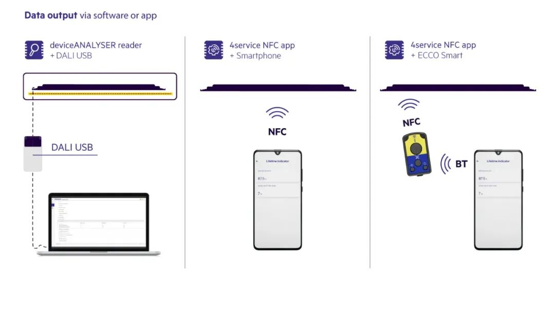 通过识别灯具数据如OEM识别码、功率和电压、光通量、光线分布等,在安装过程中即可完成灯具分配,解决传统照明系统 "设备身份混乱" 难题,实现运维阶段的高效监控。